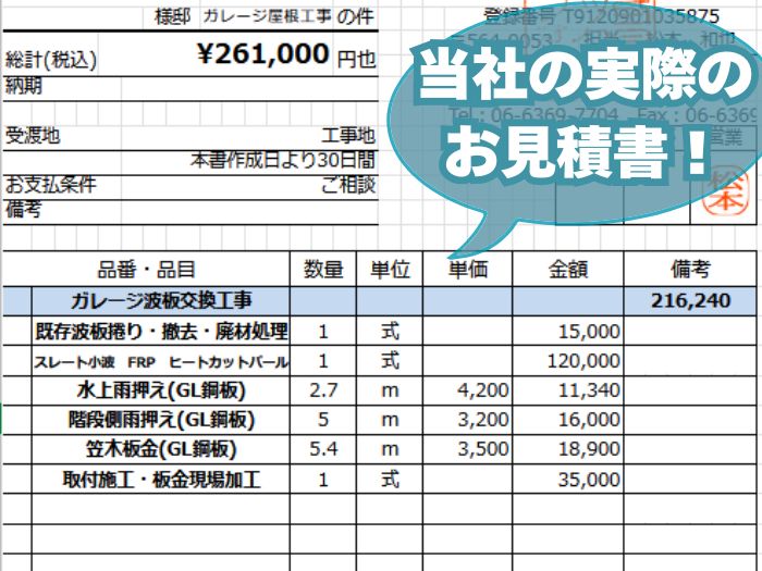 | 合計金額 | 261,000円 | 自社施工価格 |