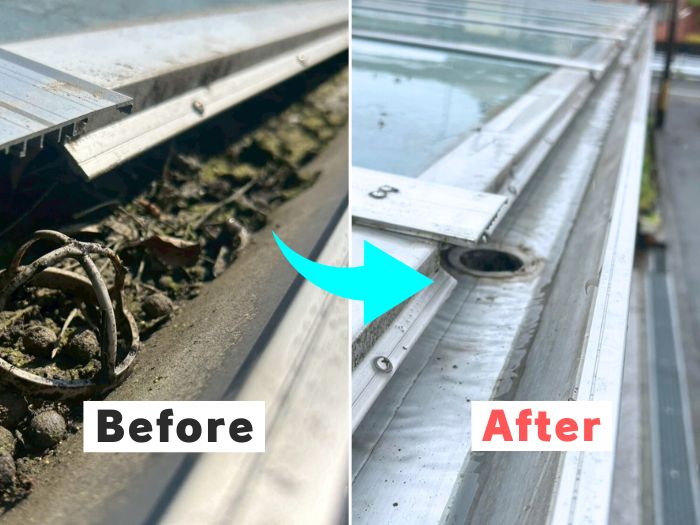 神戸市灘区|カーポートの雨漏り原因は「樋の詰まり」?清掃&ネット設置でトラブル解決|5万円