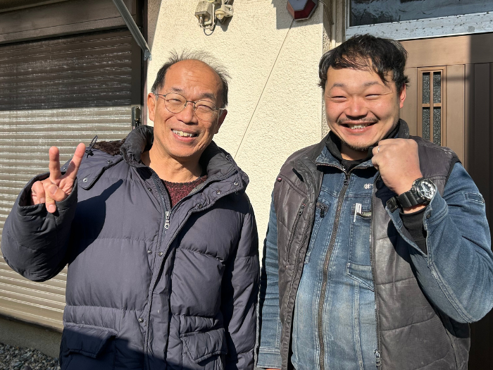 工事完了後には、お客様と一緒に記念撮影! 「どこに頼めばいいか迷っていたけれど、すぐに対応してくれて助かった」という温かいお言葉をいただき、職人冥利に尽きる現場となりました。